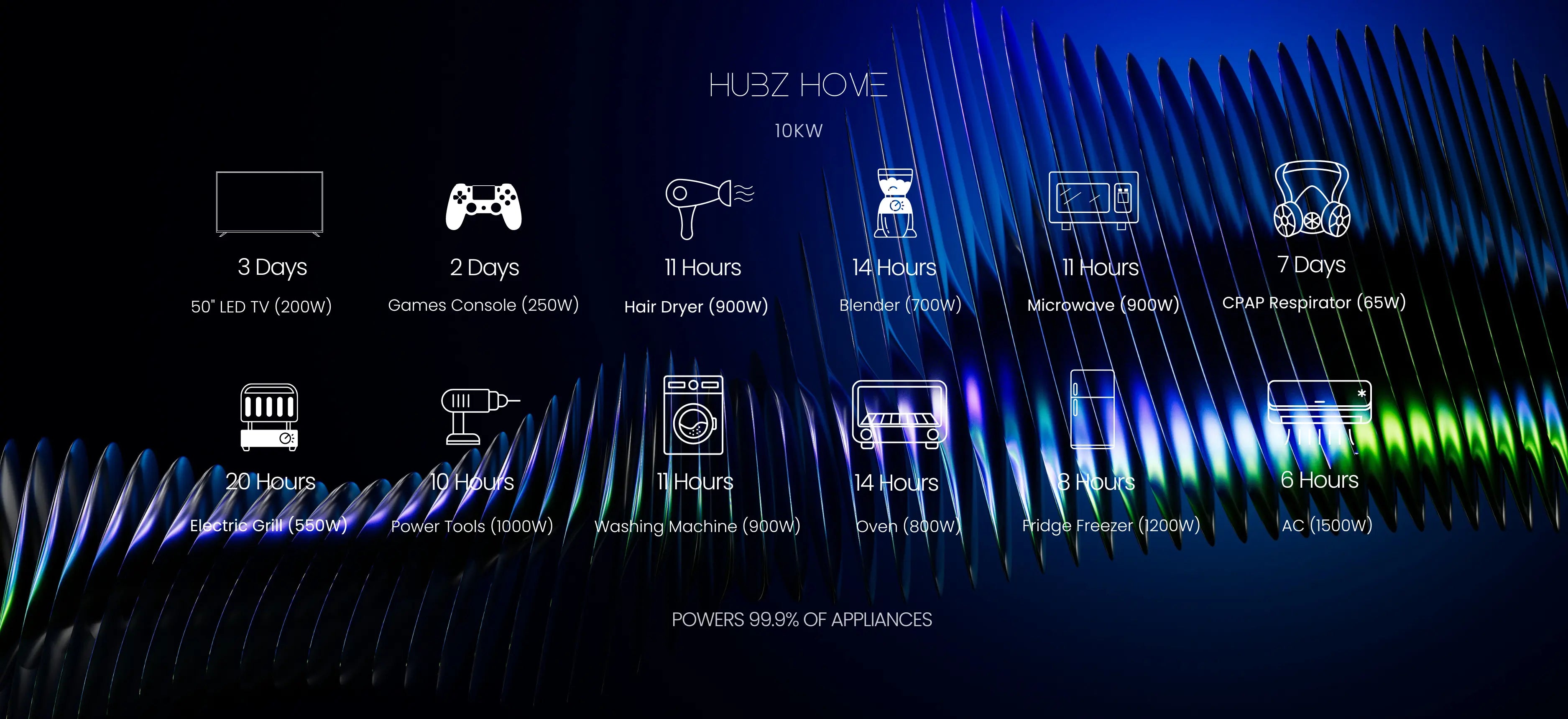 • Powers 99.9% of Home Appliances
