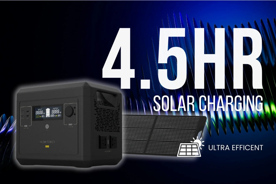 hubz pro charges from 0-80% charging in just 1 hour and 3 hours from 500W of solar.